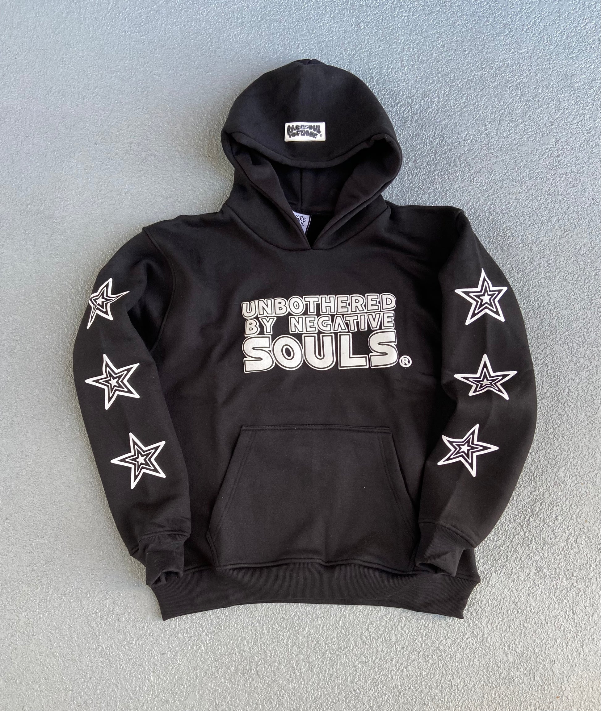 Introducing our Black & White Hoodie. Made with 85% cotton and 15% polyester heavyweight fleece, this solid color hoodie features a rubber label on the hood and a kangaroo pouch front pocket. True to size for a regular fit, or size up for an oversized look. Hand wash or wash in cold water and hang dry in shade. Rare Soul Hoodies are final sale and may not be returned, modified, or exchanged.