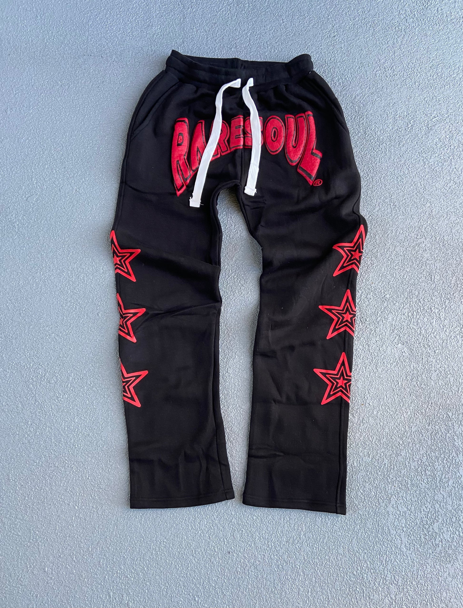 Introducing our Black & Red Sweats. Made with 85% cotton and 15% polyester heavyweight fleece, these solid color sweats features a thick elastic waist band, with a puff print logo, slightly stacked bottoms, and deep pockets. True to size for a regular fit, or size UP for an oversized/baggy look. Sweats are SLIGHTLY STACKED. Size DOWN for NON STACKED look. Hand wash or wash in cold water and hang dry in shade. Rare Soul Sweats are final sale and may not be returned, modified, or exchanged.